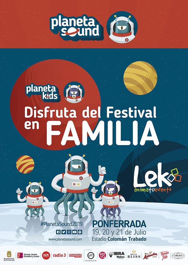 Los organizadores del festival Planeta Sound, que se celebrará en Ponferrada entre el 19 y el 21 de julio, anunciaron este jueves que el estadio Colomán Trabado dispondrá de una zona específica para niños de tres a 12 años, gestionada por el centro de ocio infantil Lek. En ella, los pequeños podrán disfrutar de actividades como teatro, danza, fabricación de instrumentos musicales, hinchables terrestres y acuáticos o una fiesta de la espuma mientras sus padres asisten a los conciertos.