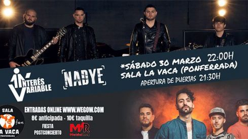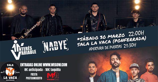 El grupo Interés Variable presentará su nuevo disco en la Sala la Vaca de Ponferrada "Ilusión o Realidad", que tendrá lugar el sábado 30 de marzo a las 22.00 horas en la Sala La Vaca de Ponferada. Además, el concierto también contará con diversas actuaciones de la banda madrileña Nadye que presentan su disco "Intrapolar". Después de los conciertos habrá fiesta postconcierto.