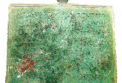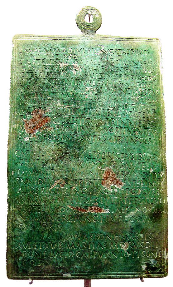 En esta ocasión el Museo da a conocer al público un documento jurídico primordial para el conocimiento de la romanización del noroeste peninsular, cuyo trasfondo histórico son las Guerras Cántabras (29 a. C.-19 a. C). Se trata de una placa de bronce de forma rectangular, que posee unas dimensiones de 24,4 x 15,3 x 0,2 cm y lleva en la parte superior una anilla que se orla con varios círculos concéntricos. El campo epigráfico se distribuye en 4 párrafos de 27 líneas y muestra un edicto del año 15 a. C., otorgado por el emperador Augusto (27 a. C.-14 d. C.) en Narbona, a los “Paemeiobrigenses” de la “gens susarrorum” que ocupaban el Bierzo Alto, por haber permanecido al lado de los romanos durante la conquista de la zona. Actitud que les valió la concesión de privilegios jurídicos, fiscales y territoriales por parte del gobernador de la provincia Transduriana, L. Sestius Quirinalis.