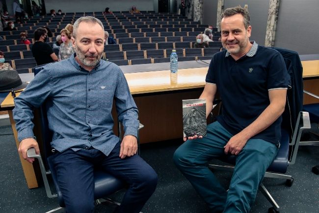 Presentación del libro 'Donde no me llaman' del periodista David Rubio (D) en la feria del libro de León. Junto a él, el director del Museo de León, Luis Grau (Foto: Campillo / ICAL)‘Donde no me llaman’ es el título del libro del periodista leonés David Rubio, director de La Nueva Crónica, que recoge sus columnas de opinión desde 2008 hasta 2020 y que, editado por Eolas y Menoslobos se presentó esta tarde en el marco de la Feria del Libro de la capital.