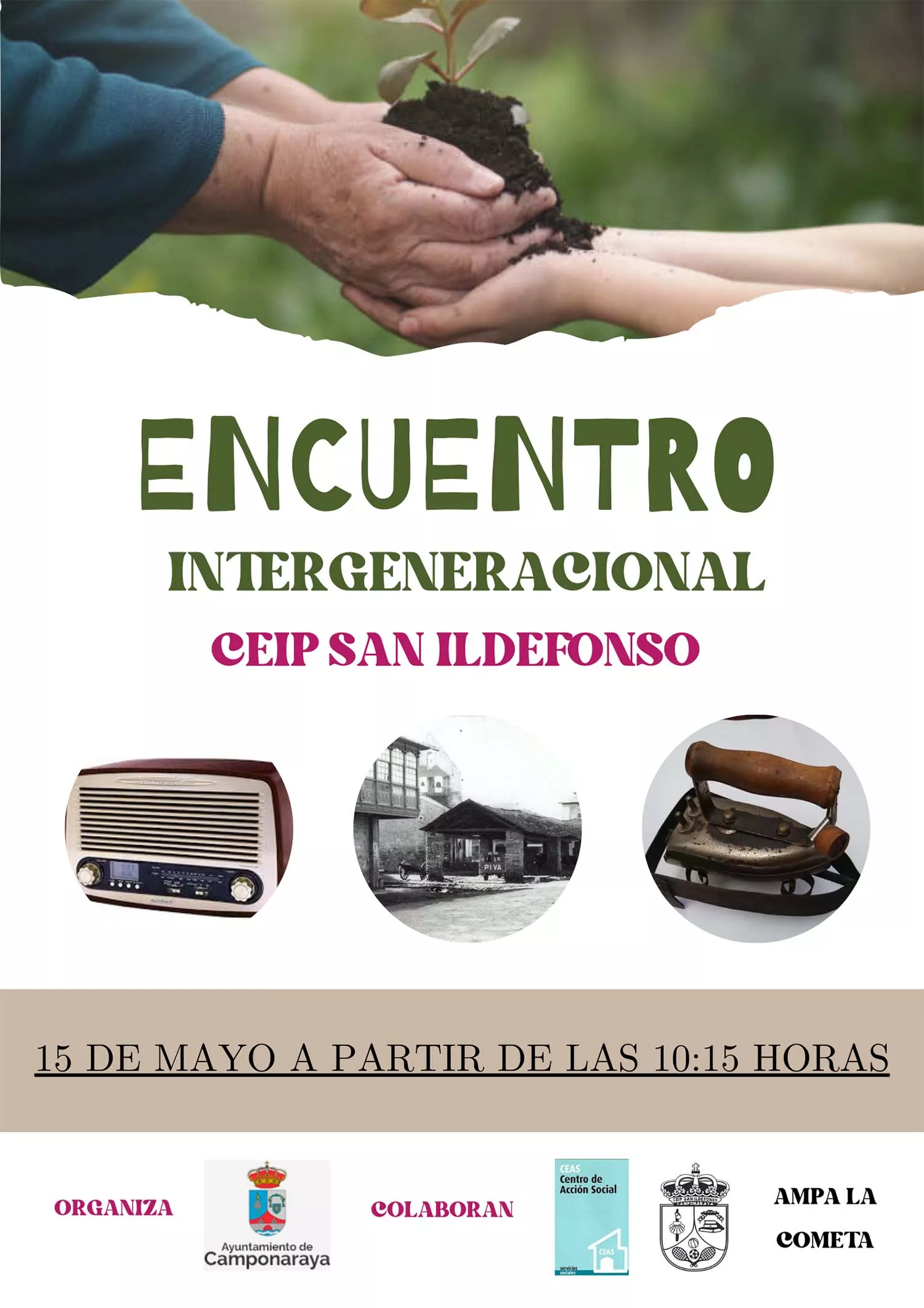 El Ayuntamiento de Camponaraya ha celebrado el pasado miércoles un encuentro intergeneracional en colegio “San Ildefonso”. Un grupo de mayores del municipio ha acudido al centro para comentar fotos antiguas a los alumnos, enseñarles y explicarles objetos del pasado y escuchar canciones tanto del pasado como de la actualidad y así poder intercambiar impresiones. El ayuntamiento ha contado con la colaboración del C.E.A.S y el A.M.P.A. y el propio colegio para la organización de la actividad.