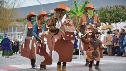 La comitiva ha salido de la explanada de la cooperativa y ha desfilado hasta la plaza mayor del municipio. Piratas, vaqueros y indios han sido algunos de los grupos que han desfilado por las calles de la villa del Ca. Otros, más originales, han inventado disfraces de pieza de Lego o de las famosas hormigas del programa de televisión 'El Hormiguero'.