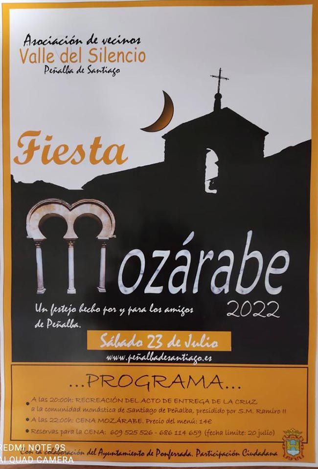 Dentro del marco de las Fiestas patronales de la localidad de Peñalba en torno a Santiago Apóstol, la Asociación de Vecinos "Valle del Silencio" de Peñalba, con el apoyo de la Junta Vecinal de esta localidad, programa la Fiesta Mozárabe 2022 para el próximo sábado 23 de julio.