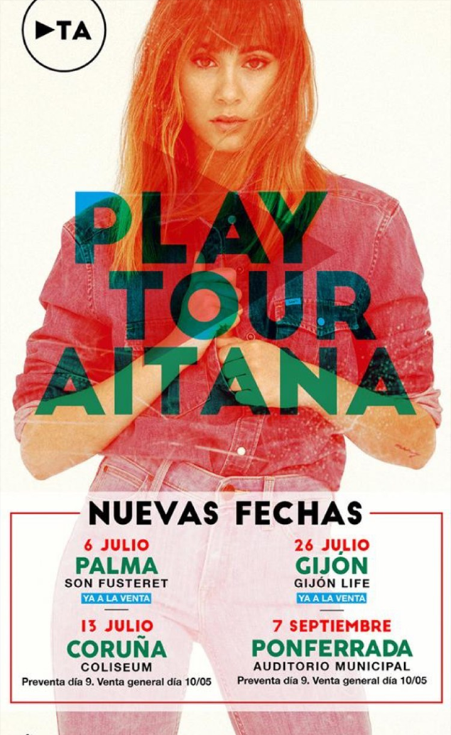 El Patronato de Fiestas de Ponferrada la había anunciado como una de las dos propuestas -junto al grupo de rock Marea, confirmado el día 6- para las actuaciones de las fiestas de la Encina, y ha sido la propia Aitana la que ha confirmado a través de sus redes sociales su presencia en la capital del Bierzo. Será el 7 de septiembre, víspera del día de la Encina, en el Auditorio Municipal a las 22.00 horas.