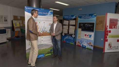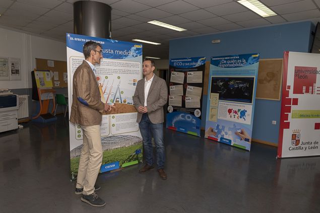 Expo Cambio Climatico UNI Ponferrada 2018 635_1 El vicerrector del Campus de Ponferrada, José Ramón Rodríguez Pérez, y el director del Área de Sostenibilidad y Calidad Ambiental, Andrés Juan Valdés, durante la inauguración de la exposición / Mario de la Torre