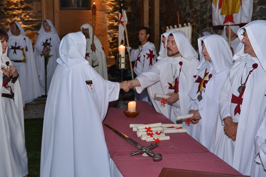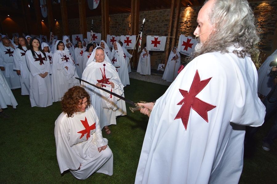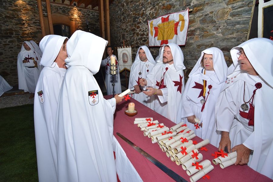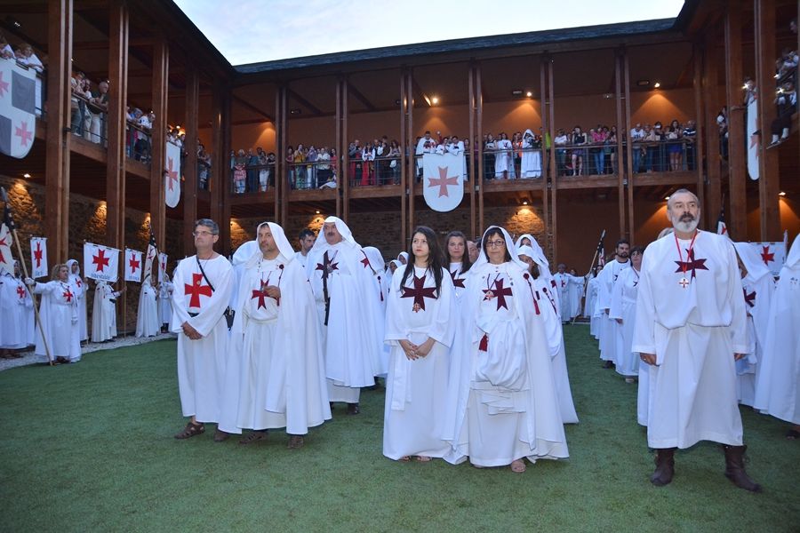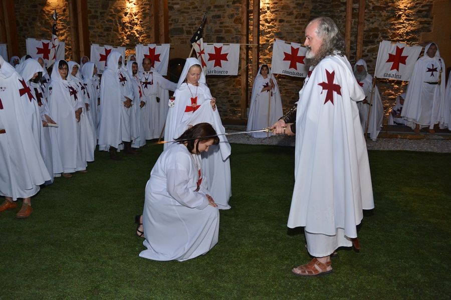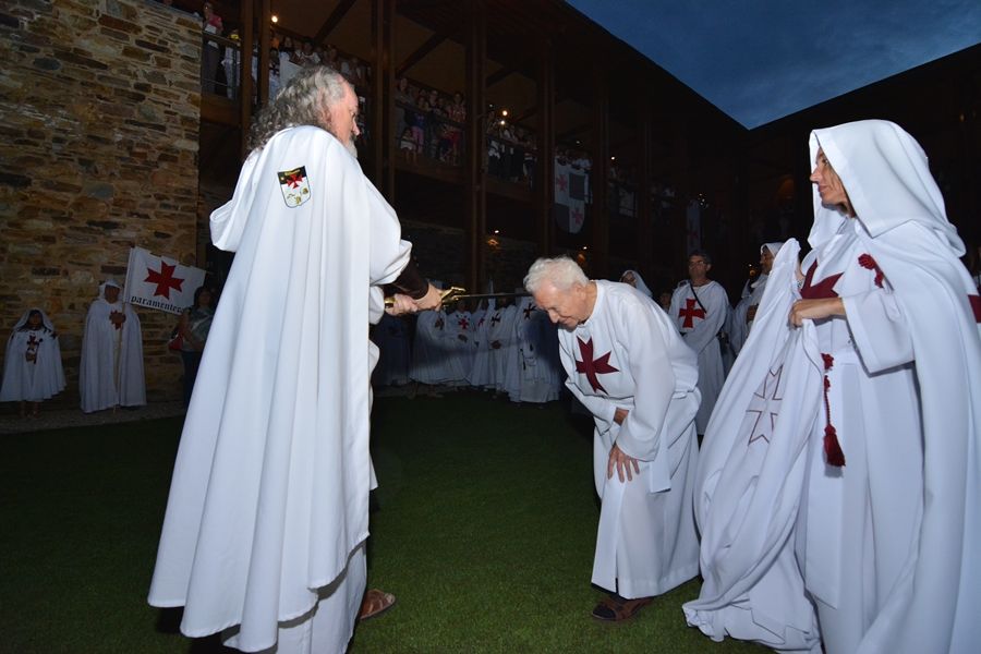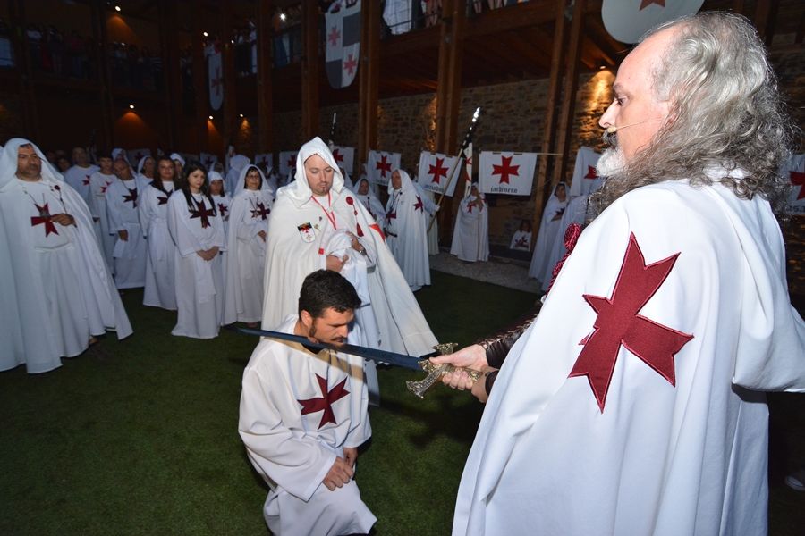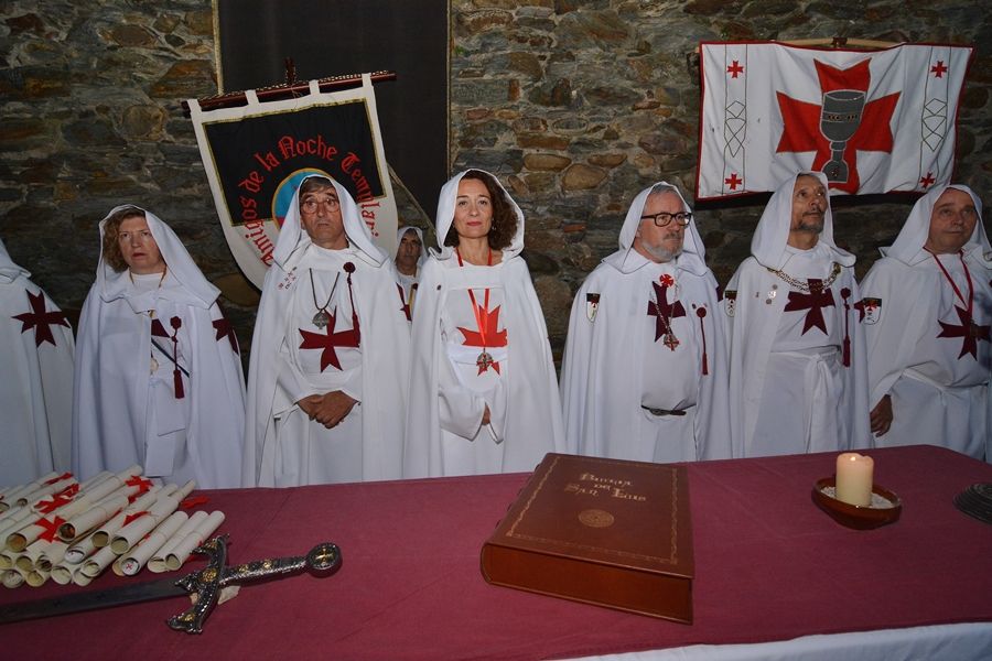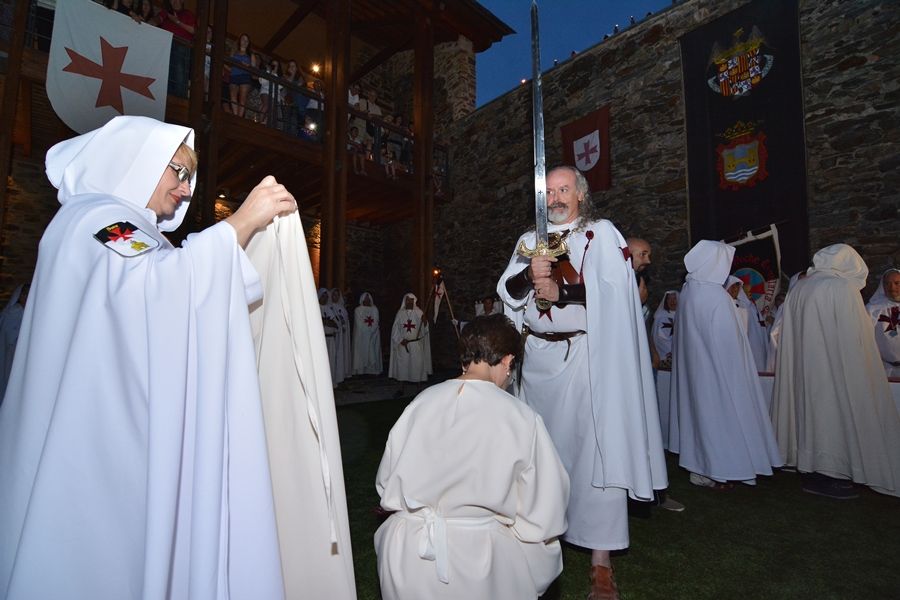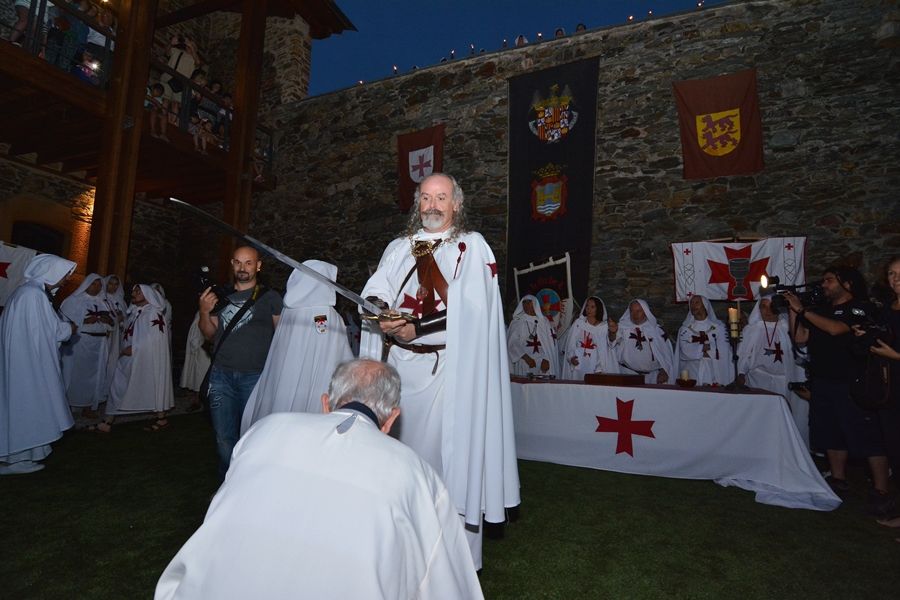 Unos minutos antes, en el patio del Castillo, y con entrada libre, Frey Guido de Garda, Maestre de la Orden de los Templarios, impuso el sello de la orden con su toque de espada y juramento a un centenar de nuevos miembros -muchos de ellos venidos de puntos como Madrid, Asturias o Galicia- que después desfilaron a la ofrenda floral al ‘caballero’ de la Plaza de la Encina, entregado por el presidente de la Asociación de Amigos de la Noche Temparia, Simón Pérez.