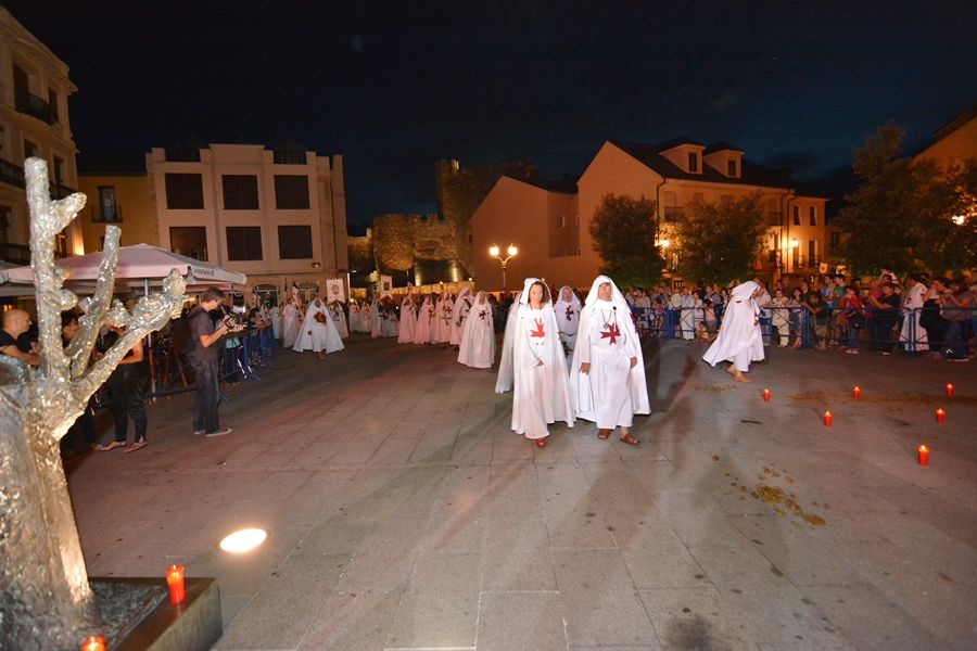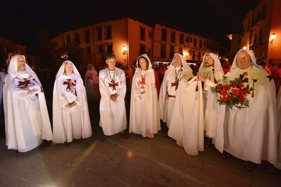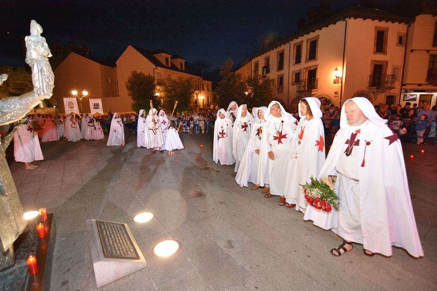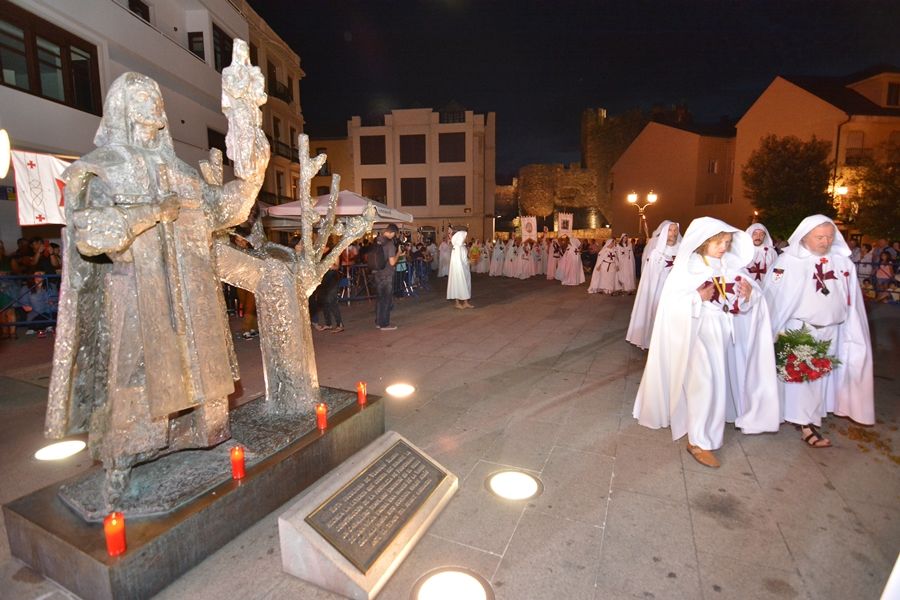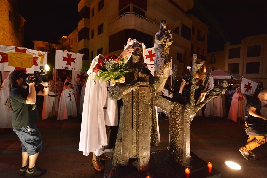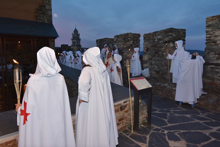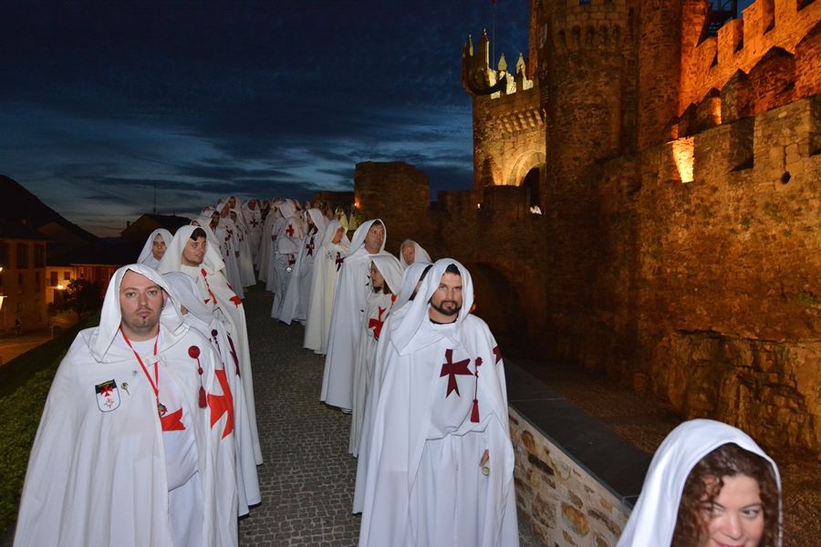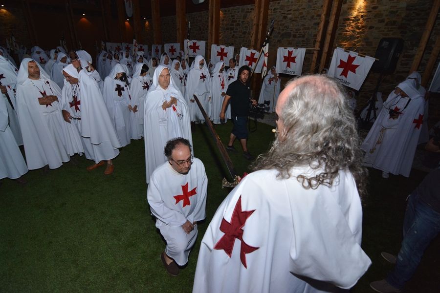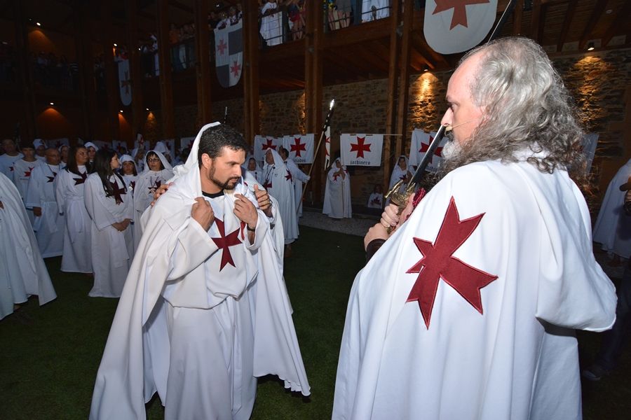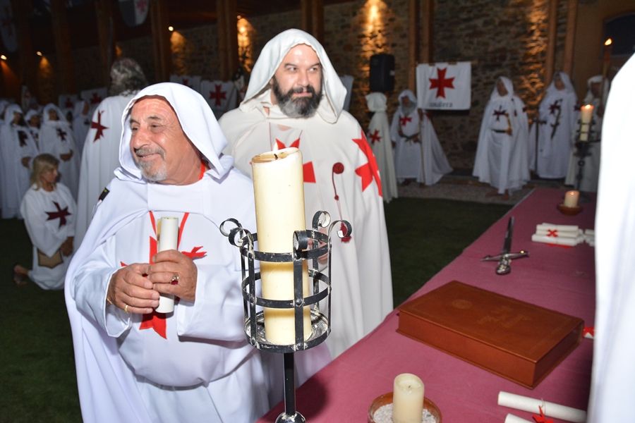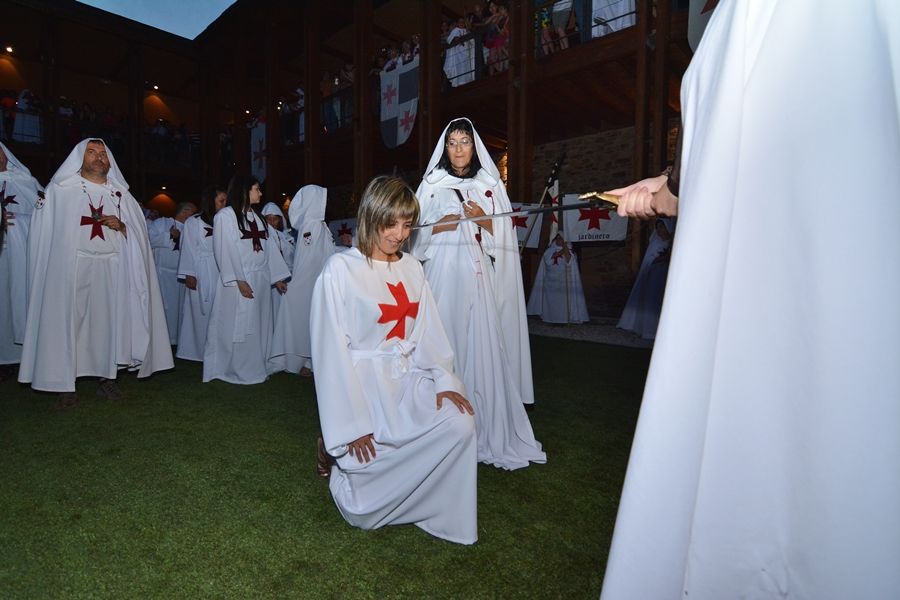 Unos minutos antes, en el patio del Castillo, y con entrada libre, Frey Guido de Garda, Maestre de la Orden de los Templarios, impuso el sello de la orden con su toque de espada y juramento a un centenar de nuevos miembros -muchos de ellos venidos de puntos como Madrid, Asturias o Galicia- que después desfilaron a la ofrenda floral al ‘caballero’ de la Plaza de la Encina, entregado por el presidente de la Asociación de Amigos de la Noche Temparia, Simón Pérez.
