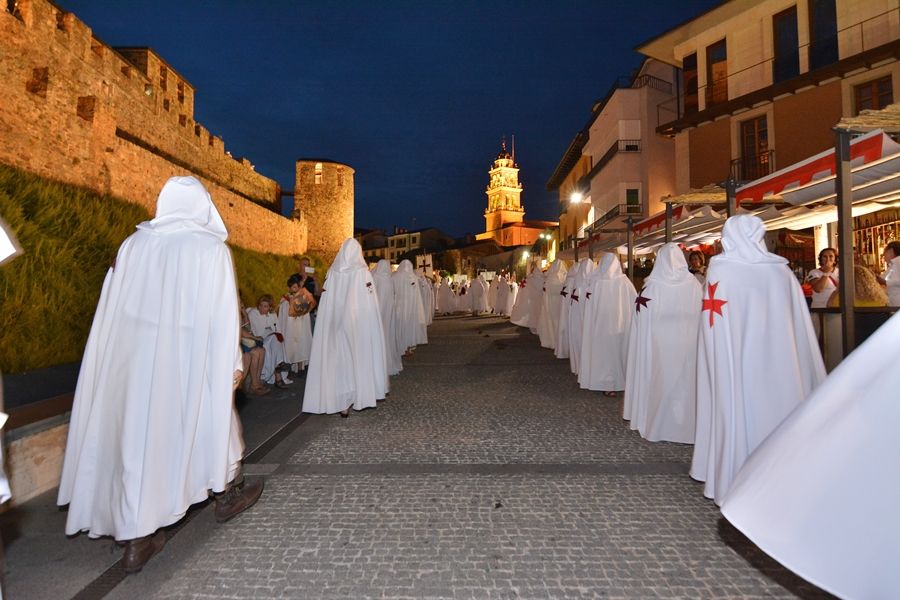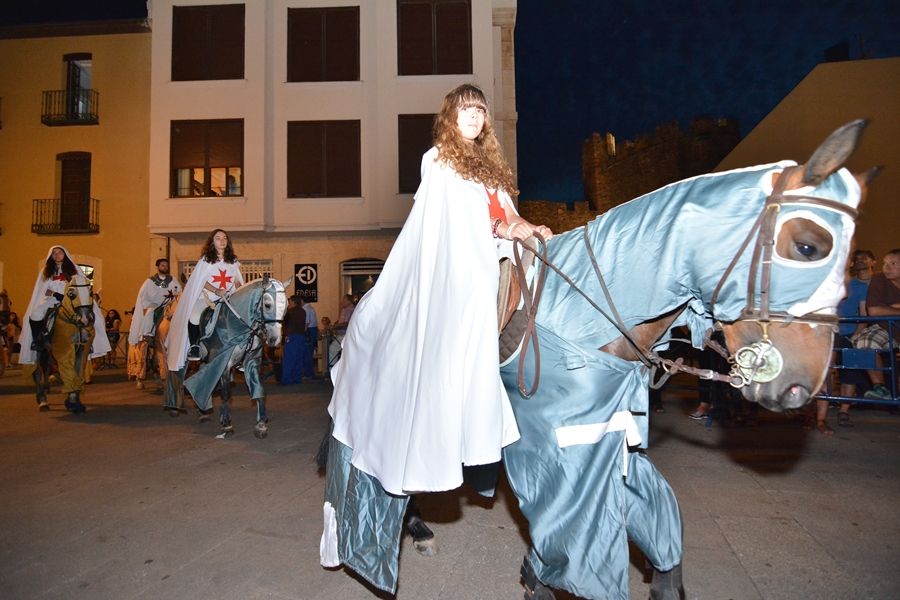 El sábado es el día grande, en el que el desfile llenará las calles que rodean el Castillo. Sobre las 23.00 si no hay contratiempos comenzará el citado desfile, con la salida desde la Cueva de la Mora del Arca de la Alianza y del Santo Grial y con el resto de la comitiva al otro lado del río, que subirá hasta el Castillo para poner a buen recaudo las dos reliquias, todo ello rodeado por música y fuegos artificiales. El desfile recorrerá las calles Tercio de Flandes, Ortega y Gasset, plaza Luis del Olmo y avenida del Castillo.