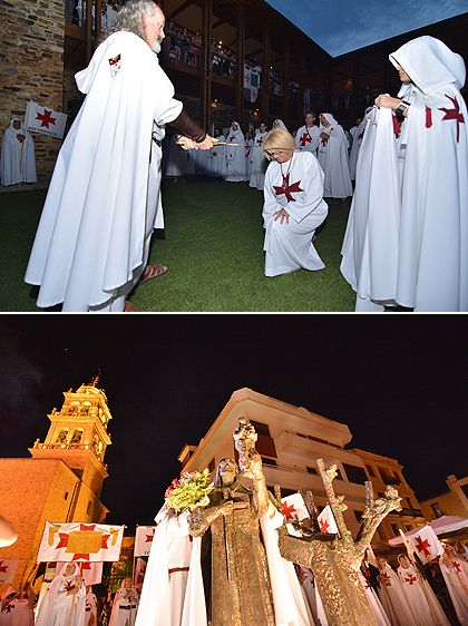 Unos minutos antes, en el patio del Castillo, y con entrada libre, Frey Guido de Garda, Maestre de la Orden de los Templarios, impuso el sello de la orden con su toque de espada y juramento a un centenar de nuevos miembros -muchos de ellos venidos de puntos como Madrid, Asturias o Galicia- que después desfilaron a la ofrenda floral al ‘caballero’ de la Plaza de la Encina, entregado por el presidente de la Asociación de Amigos de la Noche Temparia, Simón Pérez.