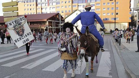 El grupo folklórico y cultural Alegría Berciana ha dado el pistoletazo de salida al Carnaval en Ponferrada con la Recreación del Entroido Berciano -como lleva haciendo desde el año 2013- una tradición basada en las descripciones que el escritor Antonio Fernández Morales detalla en su libro ‘Ensayos poéticos en dialecto berciano’ para fabricar el entroido.