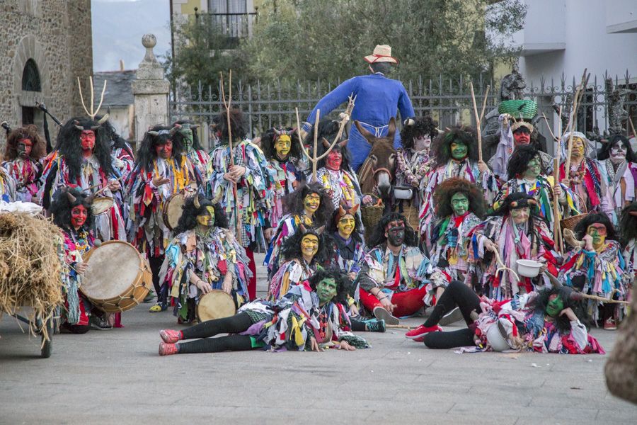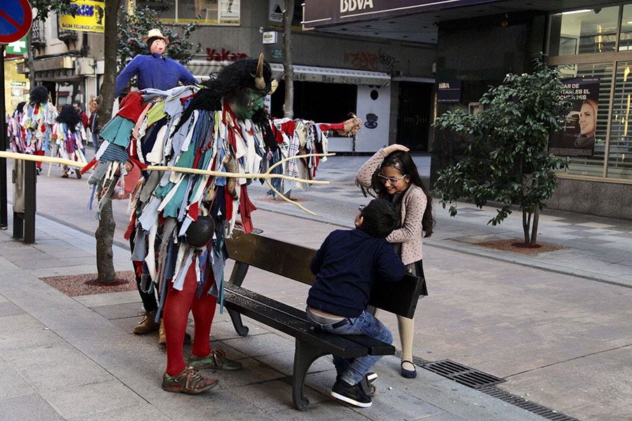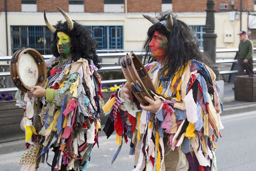 Representando a los 'demos', un grupo vestido con harapos y las caras pintadas han recorrido las calles de la capital berciana danzando al ritmo de gaitas, mezcladas con los atronadores sonidos de carracas, cuernos o cencerros y tirando huevos y plumas a los espectadores.