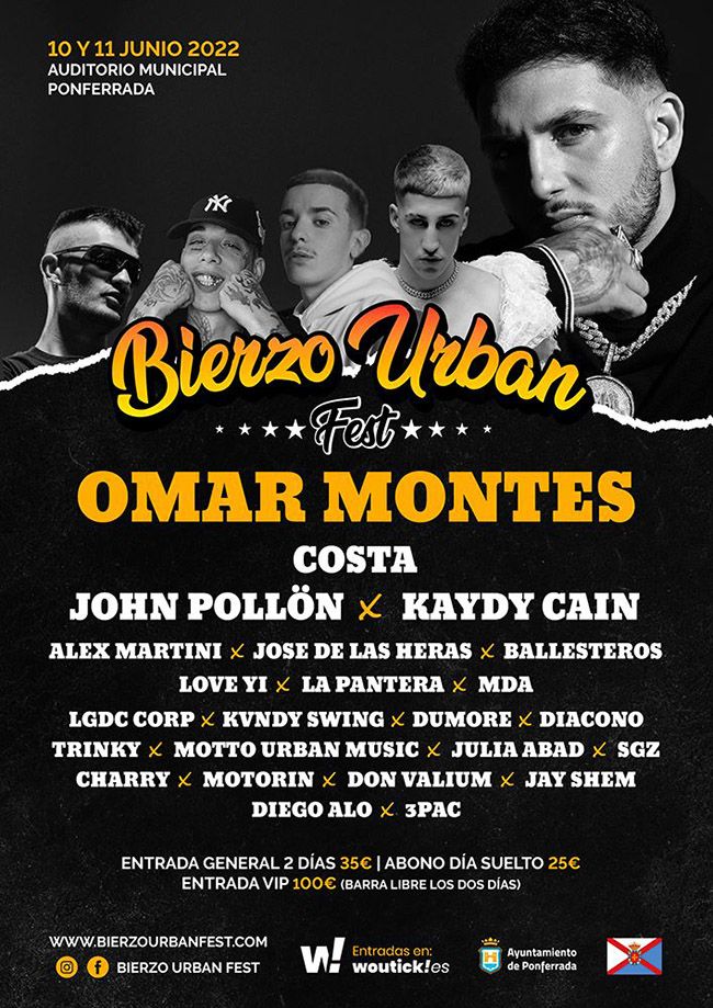 Llega a Ponferrada el Urban Bierzo Fest que se celebrará entre los días 10 y 11 de junio. Bierzo Urban Fest es un festival pionero en el Bierzo que trae a artistas internacionales como Kandy Cain y asentados en el panorama nacional como el propio Omar Montes, pero también apuesta por el talento local con artistas como LGDC Corps, John Pollón o Diacono.
