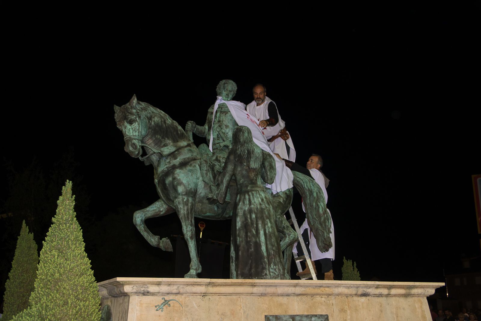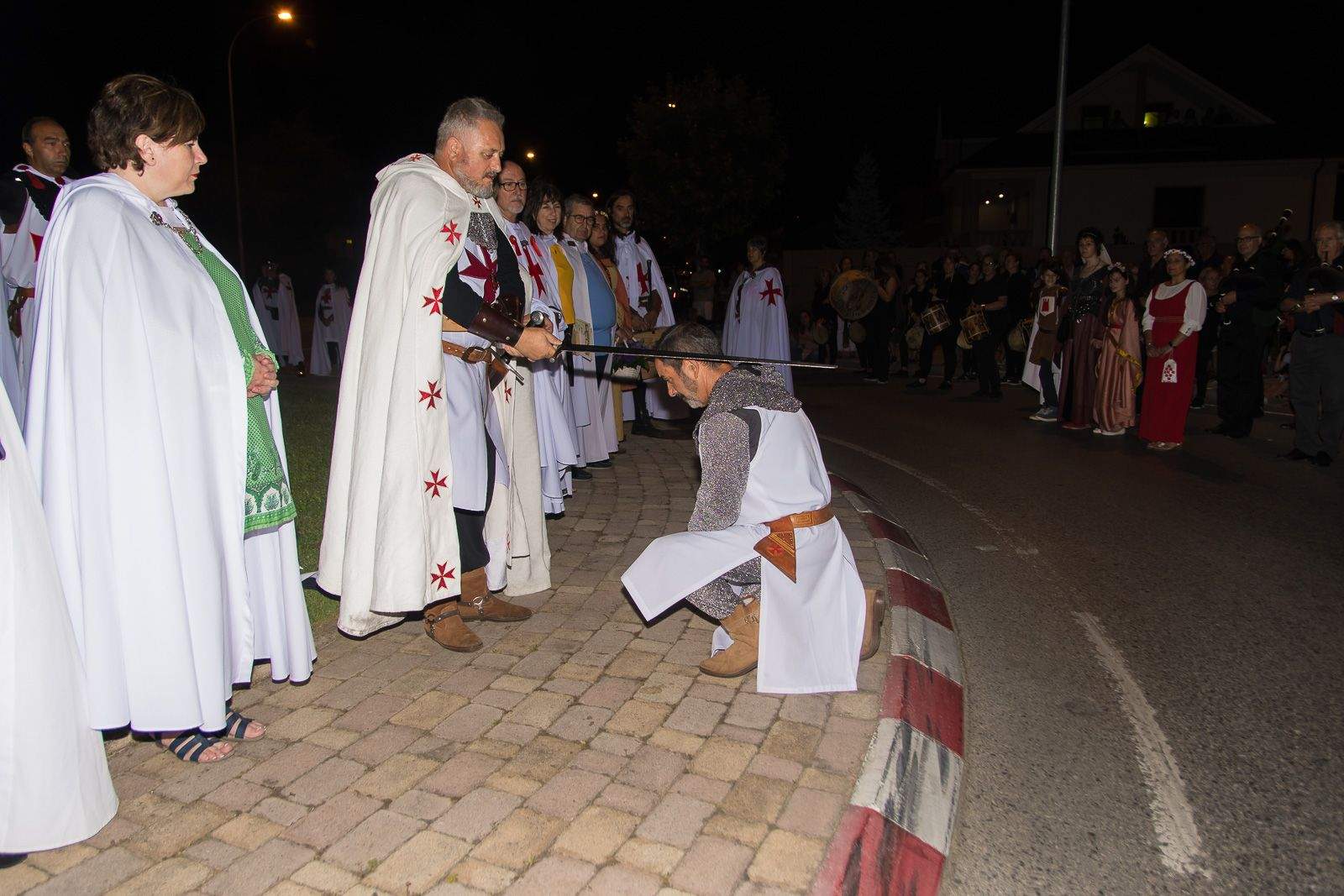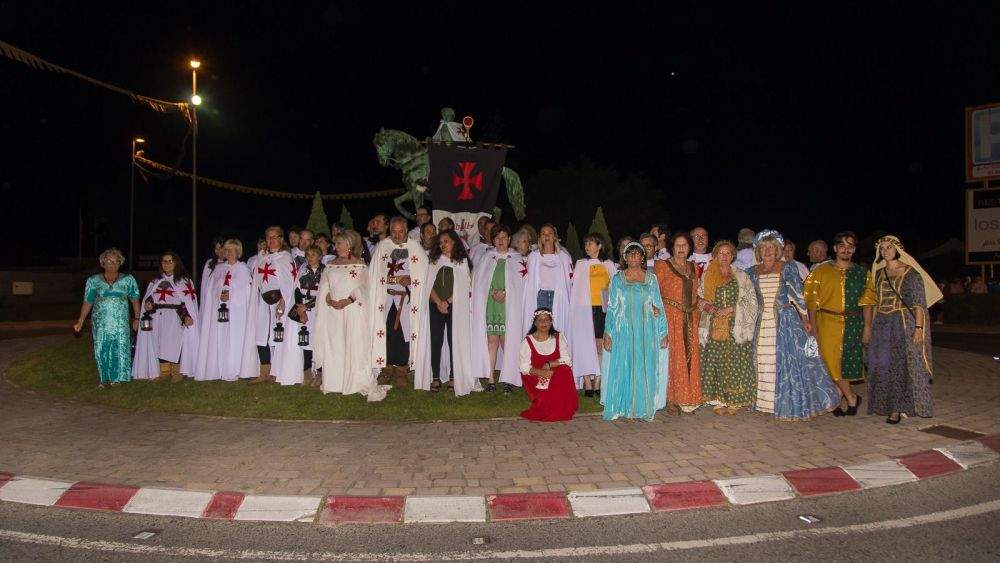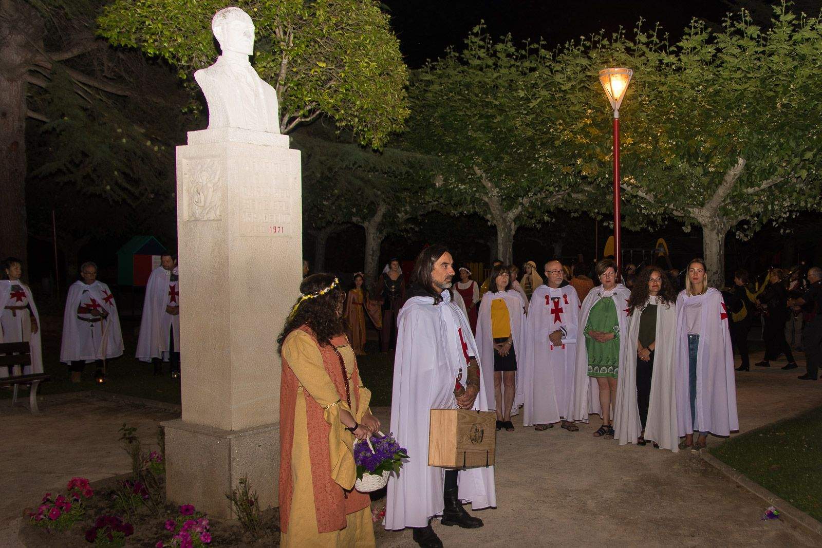 Los Caballeros, autoridades y premiados iniciaron el desfile por las calles hasta llegar a la rotonda del Señor de Bembibre, donde los premiados leyeron sus respectivos textos antes de finalizar con la imposición de la capa al caballero Templario, que representa la estatua de don Álvaro Yáñez, y la ofrenda con un cesto de violetas a doña Beatriz Osorio.