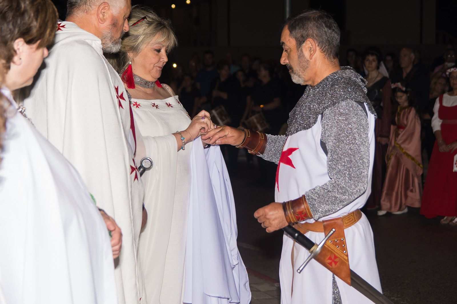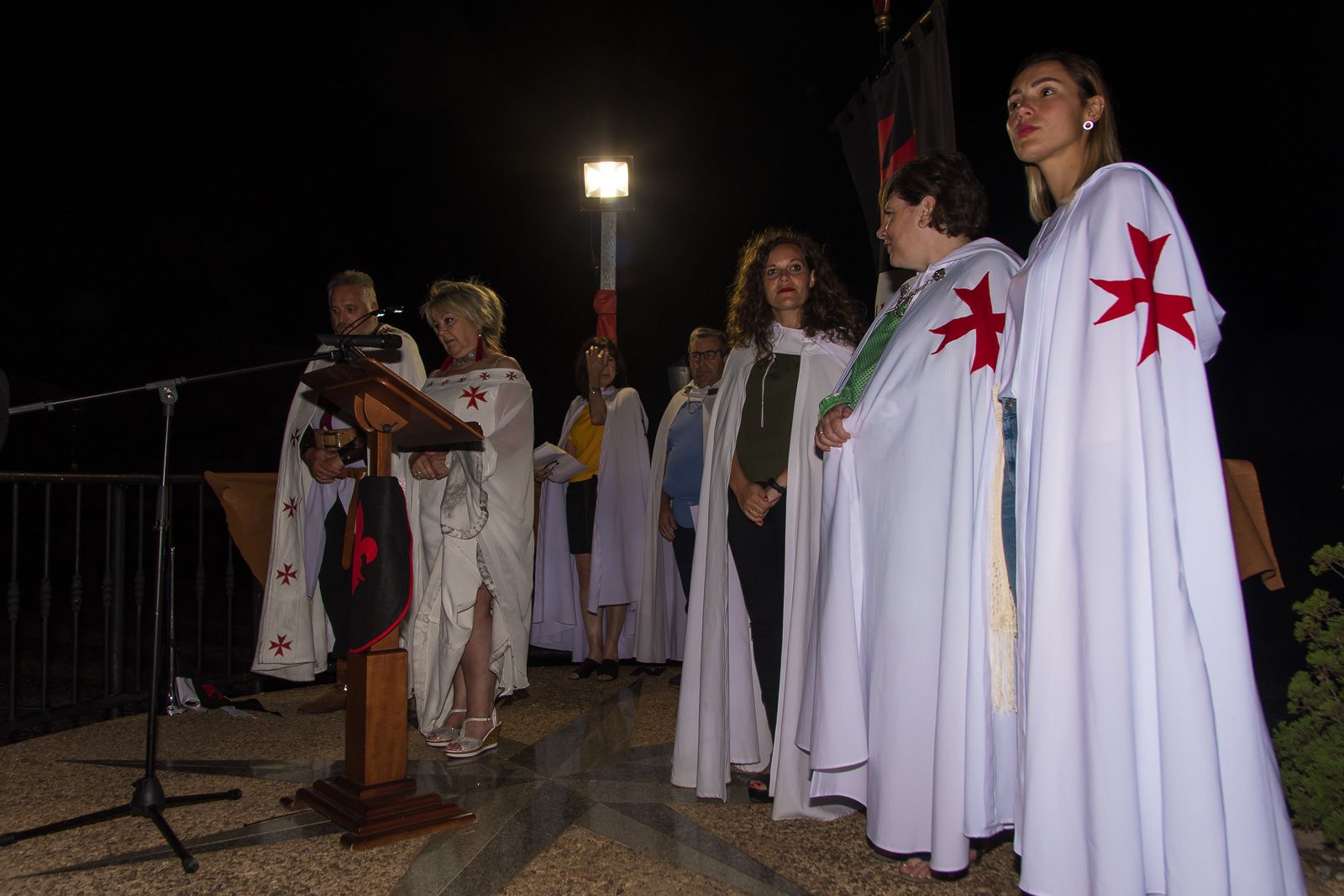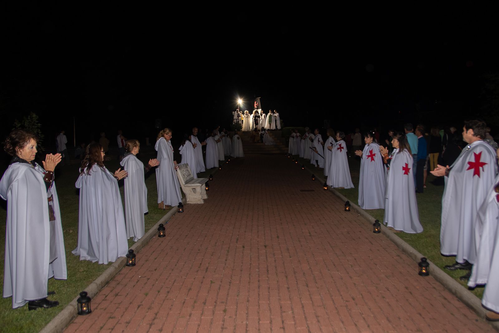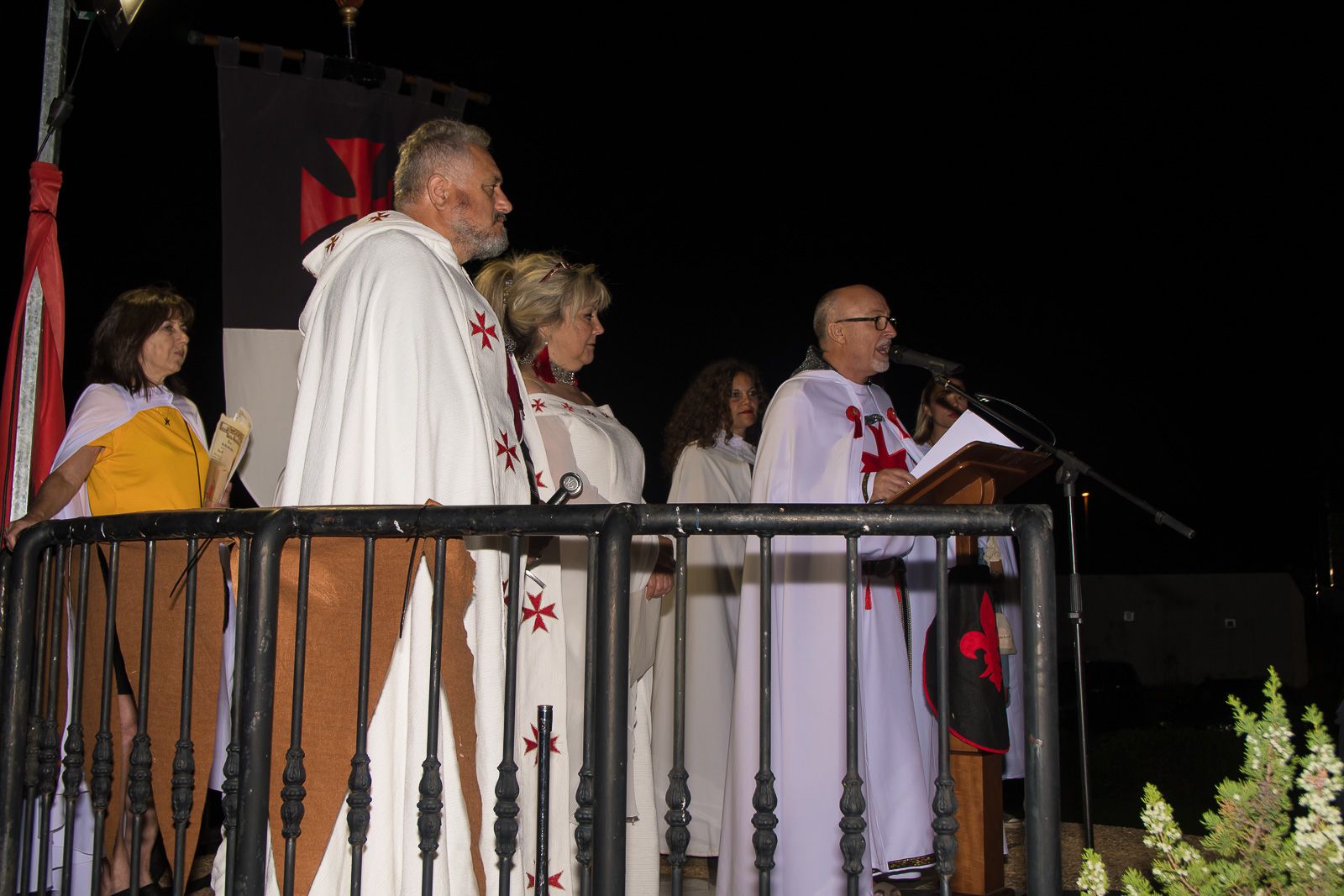 Los Caballeros, autoridades y premiados iniciaron el desfile por las calles hasta llegar a la rotonda del Señor de Bembibre, donde los premiados leyeron sus respectivos textos antes de finalizar con la imposición de la capa al caballero Templario, que representa la estatua de don Álvaro Yáñez, y la ofrenda con un cesto de violetas a doña Beatriz Osorio.