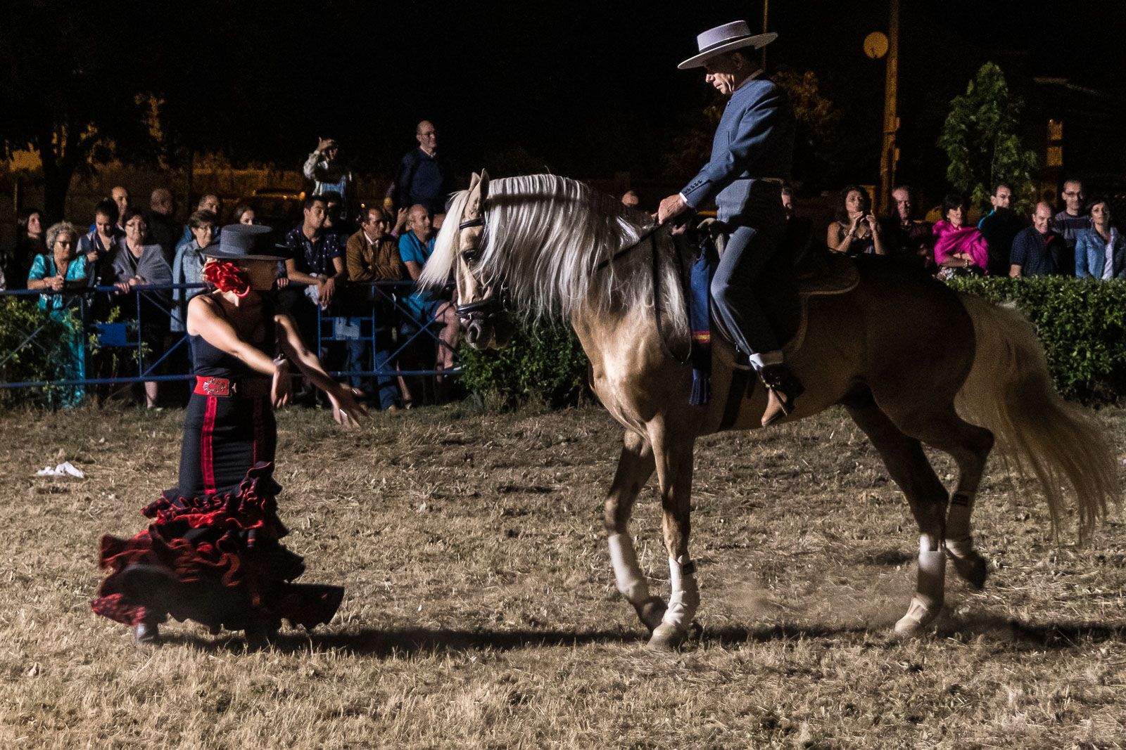 Para finalizar, un espectáculo ecuestre hizo las delicias de los asistentes con la actuación del grupo Embrujo de Castilla. Flamenqus’. Hubo exhibición de carruseles, doma clásica y alta escuela, e incluso los caballos bailaron al son de la música coplas y sevillanas.
