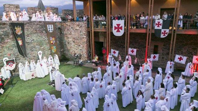 Es uno de los actos más importantes de la Noche Templaria; Frey de Guido de Garda, Maestre de la Orden de los Templarios, impuso un año más en el patio del Castillo el sello de la hermanad con su toque de espada y juramento a los nuevos miembros de la orden.
