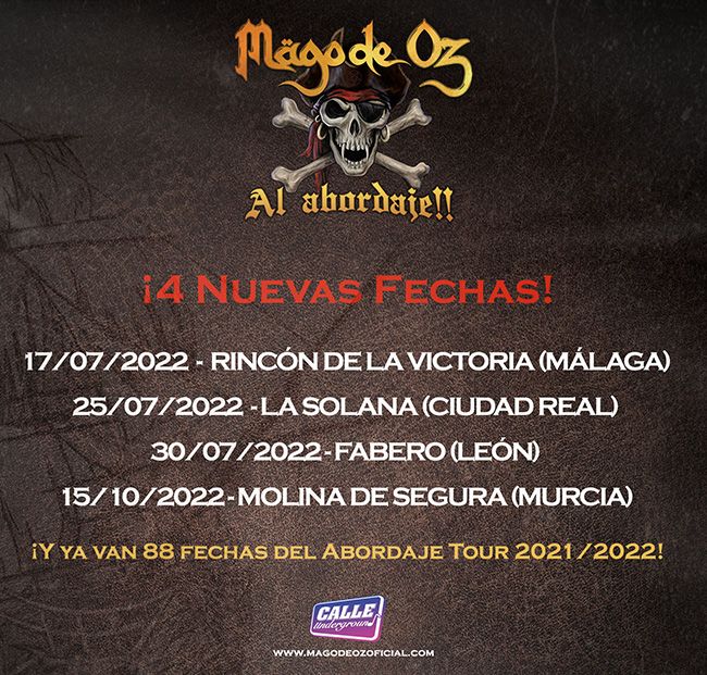 Con la gira "Al Abordaje!", esta banda  española pondrá en pie a los bercianos y turistas que apunten en su calendario la parada obligatoria en Fabero. Así, en pleno verano Mago de Oz viajará al Bierzo y hará sentir su música a los cientos de personas que han crecido con sus canciones, que muchas de ellas, permitirán a los asistentes disfrutar y viajar a aquellos lugares del pasado, donde la música de Mago de Oz fue banda sonora.