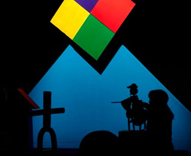 La escenografía se compone con las piezas de un tradicional juego de arquitectura. Rectángulos, semicírculos y triángulos ayudan a unos personajes sintéticos a contarnos la inmortal historia de