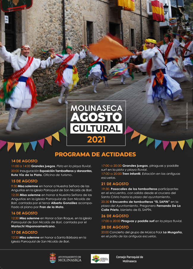 Molinaseca ha organizado una serie de actividades para este mes dentro del programa "agosto cultural". Los actos tendrán lugar del 14 al 18 de agosto y van desde juegos y pasacalles a encuentros de tamborileros y padel surf.