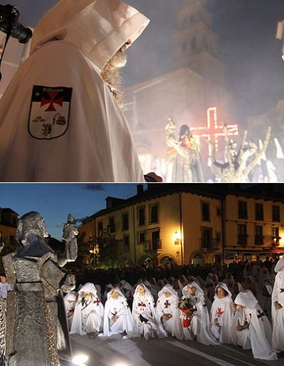 La ordenación de una treintena de nuevos caballeros abre los actos de la Noche Templaria, que este año cambiaron de tercio. La ordenación bajo la luz del día -en plena tormenta- y la ofrenda al caballero templario ya con la luna.