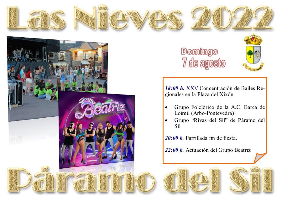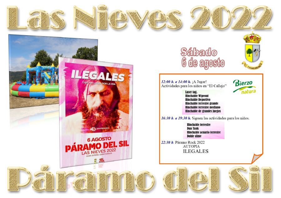 Páramo del Sil regresa a su festividad después de dos años de COVID donde no se han podido celebrar sus fiestas patronales, "llega la hora de volver a la normalidad, sin olvidaros que esto no ha terminado y la sensatez y la precaución deben continuar presentes" razonan desde la organización de las fiestas. Así, llega el mes de agosto y con él la festividad de Nuestra Señora de las Nieves. Los días 4, 5, 6 y 7, la fiesta y la diversión, lo lúdico y religioso se dan la mano entre conciertos, actividades deportivas y romerías.
