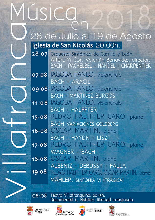 Pedro Halffter interpretará al piano las variaciones de Goldberg, obra de J.S. Bach, el miércoles 15 de agosto a las 20.00 horas en la iglesia de San Nicolás de Villafranca del Bierzo. La entrada es gratuita hasta completar aforo. Comienza así la tercera semana del festival de música en Villafranca, que tanto éxito está tendiendo en su segunda edición.