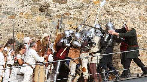 Un grito rompió esta tarde la tranquilidad de los paseantes en el entorno del Castillo de los Templarios de Ponferrada. “¡Nos atacan!”, alertaban desde el interior de la fortaleza, a la puerta de la cual varias decenas de ‘irmandiños’ se agolpaban para intentar asaltarla. Los hechos reales ocurrieron en un mes de septiembre de hace 550 años y hoy, más de cinco siglos después, la asociación Caballeros de Ulver recreó, por primera vez, este episodio olvidado de la historia berciana.