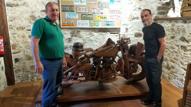 En la exposición podemos encontrar una colección de motos de madera, mimbre y cuerda a tamaño real. Esta colección única fraguada a lo largo de los años, está compuesta por motos de distintos estilos (Custom, choper, carretera…), procedentes de distintos puntos de España y del extranjero. Entre estas piezas podemos encontrar la réplica exacta en madera de teca de una moto Harley-Davidson de la década de los 40, utilizada por el ejército de Estados Unidos en la II Guerra Mundial. La exposición cuenta también con obras con la esencia Recicler, construidas a partir de materiales reciclados que nada tienen que ver con la pieza que forman finalmente, como puede ser una gran tortuga elaborada a partir de piñones, un tubo de escape, trapecios de coche y rejas de labranza.