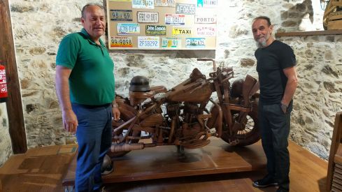 Los amantes de las motos ya pueden visitar “Una exposición diferente” en la sala de Exposiciones de la oficina de turismo de Molinaseca, con piezas de Miguel Rodríguez M.RECICLER, conocido como el rey del reciclaje motero. En el acto de inauguración celebrado este sábado ha estado el alcalde de Molinaseca, Alfonso Arias, y el autor de las piezas, Miguel Rodríguez.
