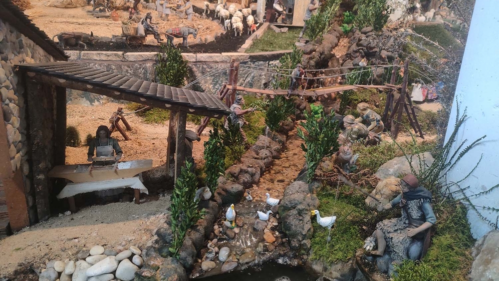 El recorrido incluye una gran variedad de escenas: el portal de Belén, un castillo con los Reyes Magos, una sinagoga, el palacio del gobernador, el taller de San José, una noria, una zapatería, un palomar, la Anunciación a los pastores, una reproducción de Las Médulas y un amplio conjunto de figuras artesanales que convierten esta muestra en un auténtico referente navideño de la comarca.