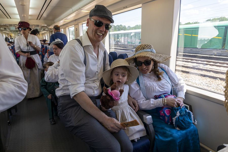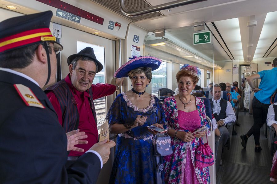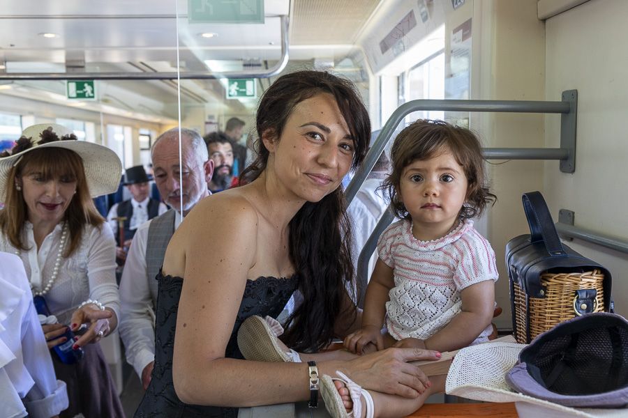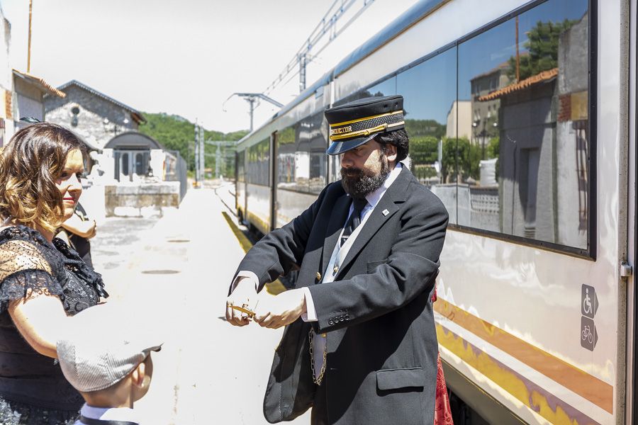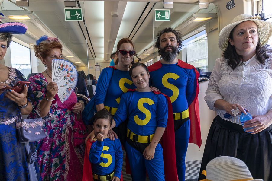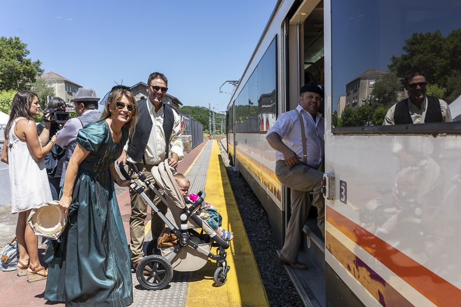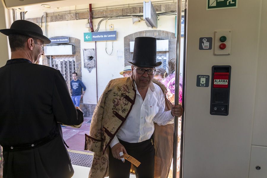 Una de las citas ineludibles, y que se convierte en referente de la primavera cultural de la Comarca, es el viaje de época. El tren salió este sábado a las 16.00 horas con destino A Rúa. Los pasajeros lucían sus mejores galas de antaño  para adentrarse en un viaje con historia.