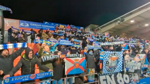 La afición de la Sociedad Deportiva Ponferradina que este sábado se desplazó hasta el Anxo Carro para ver a su equipo disputar el 'derbi de Ancares' celebró la victoria ante el Lugo cantando 'A Ponferrada me voy' para felicitar a los futbolistas.