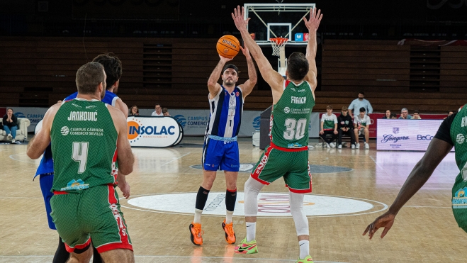 Fue Đedović una pesadilla para los blanquiazules, ya que elevó la renta sevillana por encima de la decena con una bandeja y otro triple que culminaron un parcial de 15-0 entre el primer y el segundo cuarto (35-20, min 14). Se atascaron los bercianos, que estuvieron más de seis minutos sin anotar canastas en juego. Ni desde los 4,60 detuvieron la sangría, ya que Bergens falló dos tiros libres, aunque sí lo hizo Òrrit acertando desde más allá del arco.