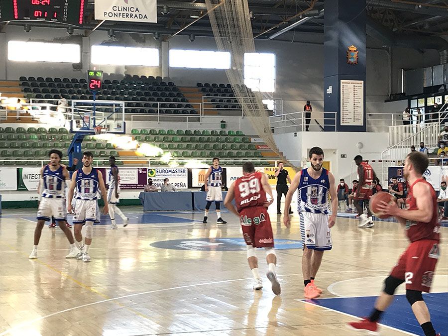 Incidencias: Partido de ida de los cuartos de final del play-off de ascenso a LEB Oro disputado en el pabellón Lydia Valentín de Ponferrada. Expulsado por faltas Tshilumbu.