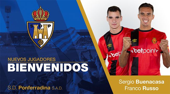 Foto SD PonferradinaA tres días de iniciar la pretemporada –el próximo lunes–, la Deportiva Ponferradina ha anunciado las primeras novedades en su plantel de cara a su retorno a LaLiga 1|2|3. El delantero centro aragonés Sergio Buenacasa y el defensa argentino Franco Matías Russo se incorporan al equipo de la capital del Bierzo en calidad de cedidos por el Mallorca, conjunto recién ascendido a LaLiga Santander.