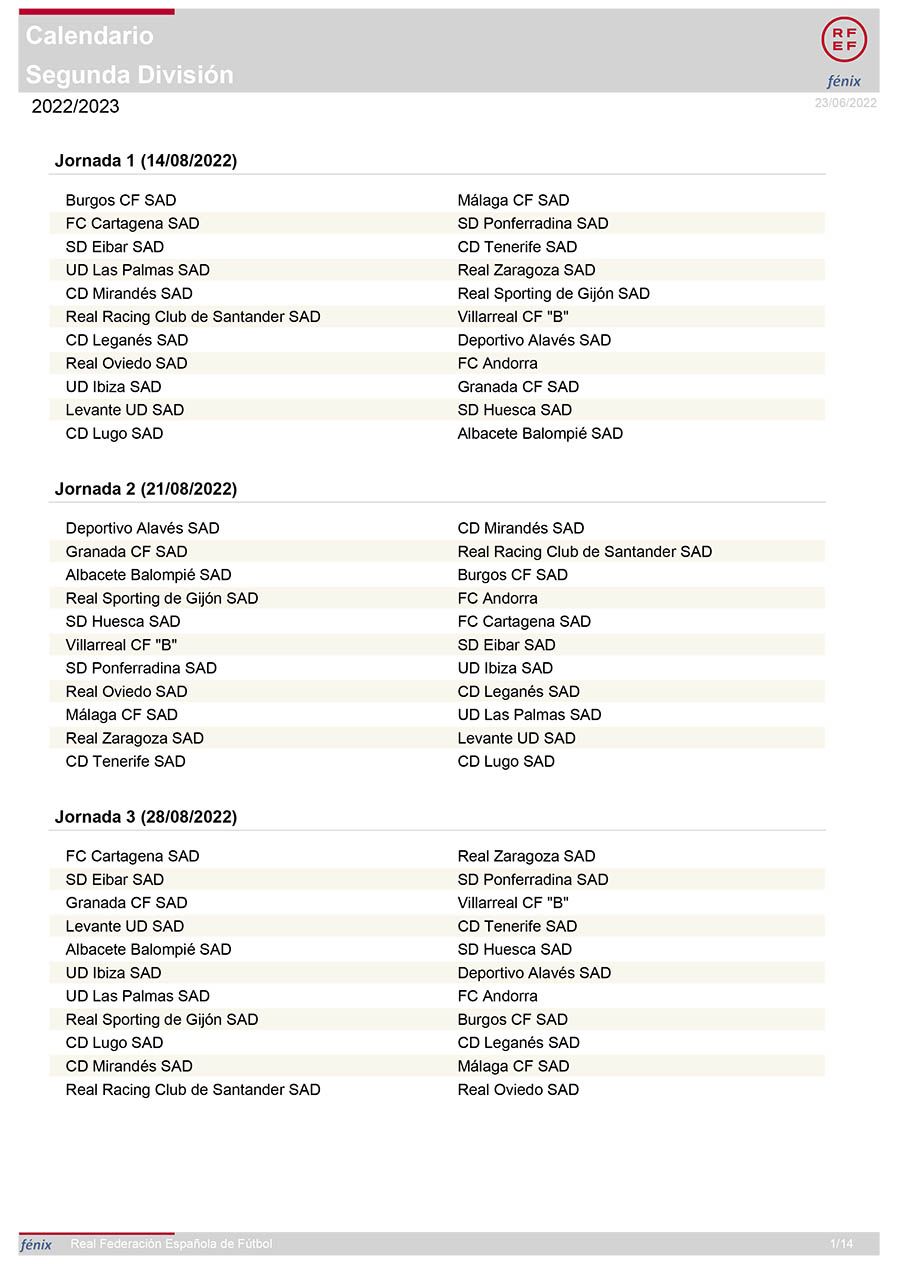 A continuación el calendario completo de LaLiga SmartBank: