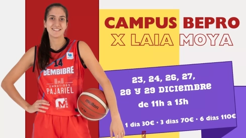 La jugadora del Embutidos Pajariel Bembibre Laia Moya organiza la 1a edición del Campus ‘BePro x Laia Moya’, que se celebrará en el Bembibre Arena entre el 23 y el 29 de diciembre. Contará con la participación de jugadoras del equipo de Liga Femenina Endesa y está dirigido para jóvenes nacidos entre 2008 y 2018