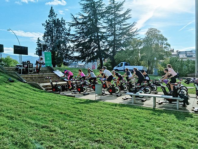 El exterior del edificio principal del Campus de Ponferrada celebró esta tarde la Master Class de Spinning, actividad enmarcada dentro del programa de actos del XXV aniversario del Campus y organizada en por la Universidad de León en colaboración con el Centro Quality de Ponferrada.