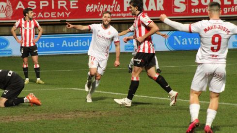 De hecho, empezó ambiciosa con un centro-chut de Sobrino que no pudo sorprender a Padilla y se perdió por encima del marco visitante. También tuvo una ocasión de cabeza tras un centro desde la derecha de Calero, pero su remate, flojo, acabó en las manos del arquero visitante. El propio Calero realizó un disparo lejano que se fue alto ante la pasividad de la zaga rojiblanca al cuarto de hora de juego. Fue la antesala del gol, ya que en la siguiente llegada hizo el 1-0 con un golpeo raso después de combinar con Víctor García que se coló por el palo de Padilla.