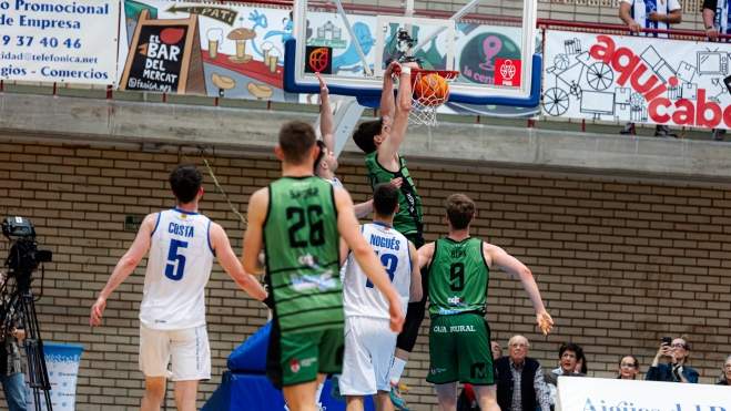 Encontró dos veces el cuadro berciano a Morales tras la continuación y dio la vuelta al marcador, aunque un triple de Marc Peñarroya mantuvo el equilibrio. Volvió a sumar Merlo y Samar sacó una falta que repuso la iniciativa berciana antes de que Morales estirara un poco más la renta. Un triple de Roger Martí precedió a la réplica de Moncanut que forzó el tiempo muerto de Josep María Raventós, técnico local.