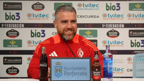 Javi Rey, entrenador de la Deportiva Ponferradina, atendió a los medios antes de visitar al Tarazona este domingo (15:30 horas) y tras la remontada ante el Osasuna Promesas, un partido en el que su equipo tuvo que asumir riesgos importantes a pesar de que a los técnicos, como reconoció el propio adiestrador gallego, no les gusta. «El otro día quedamos con Borja Valle y Bustos», aclaró el preparador ourensano, que reconoció que «arriesgamos demasiado. Me gusta el orden», incidió.