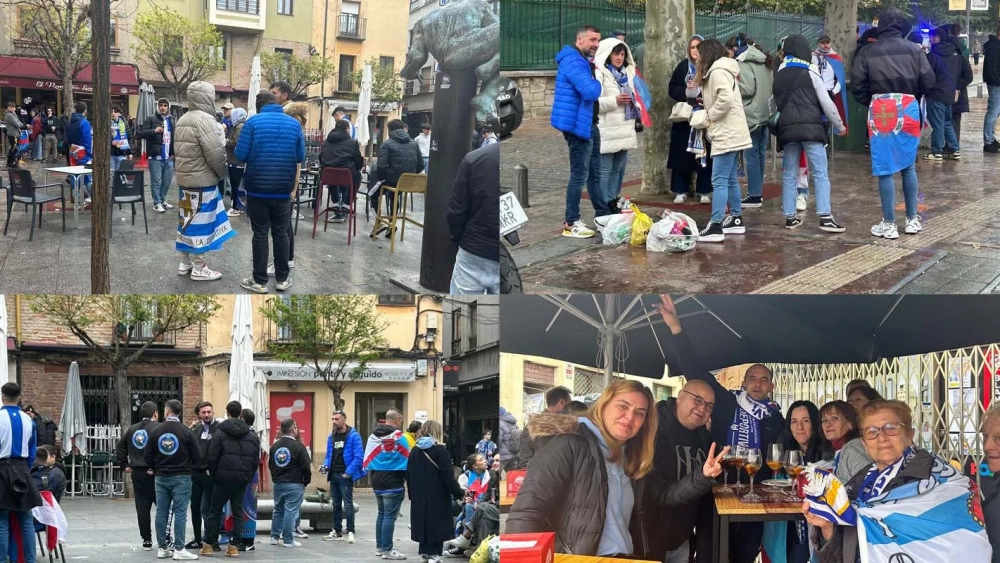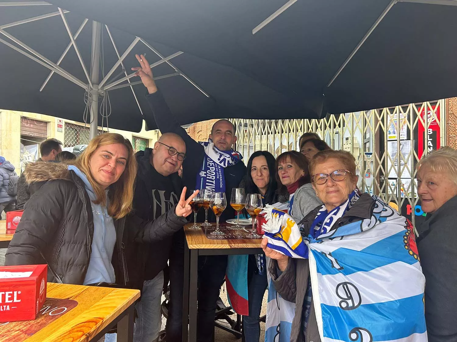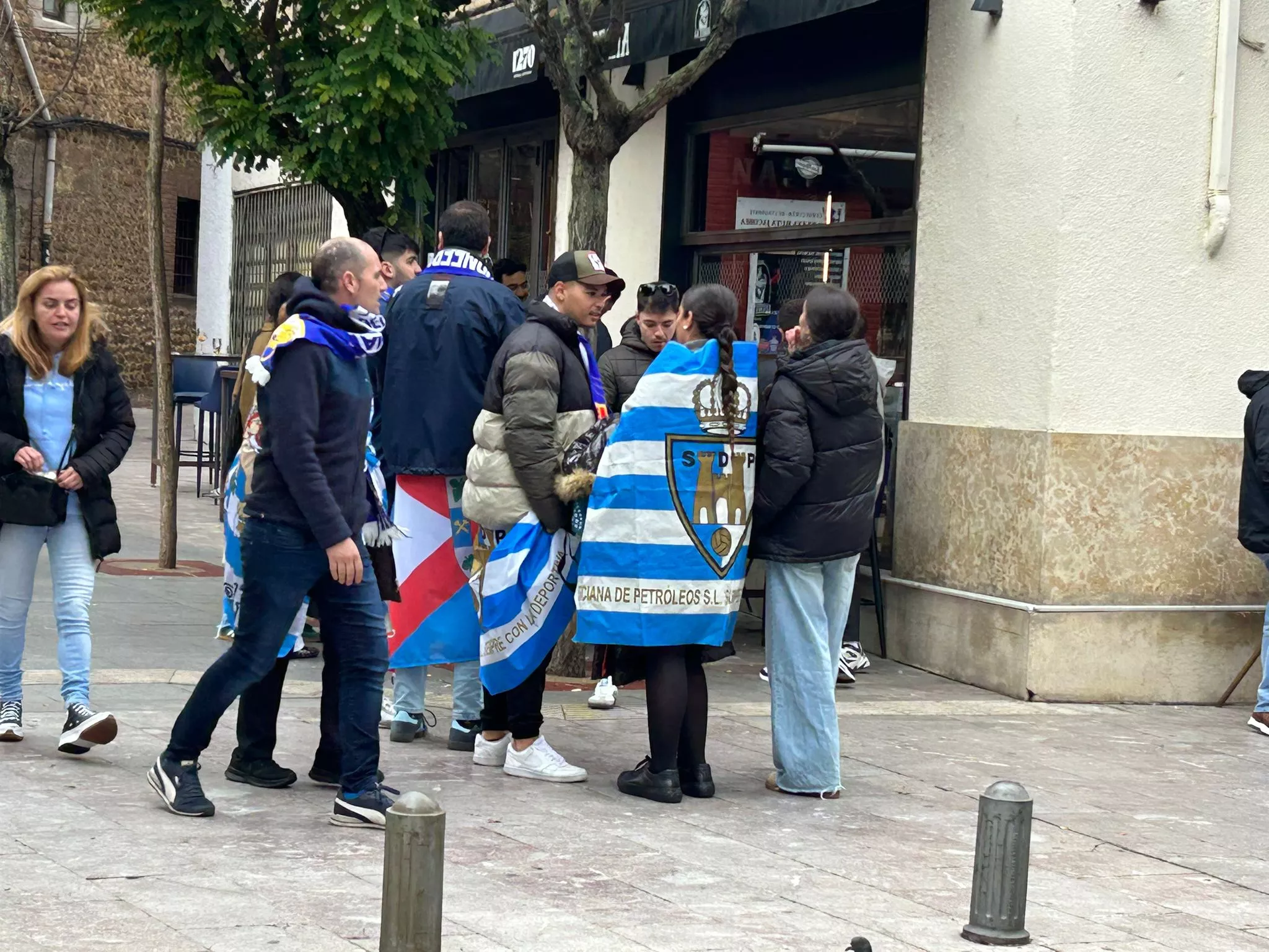 Con banderas, equipación y sobre todo mucha ilusión y ganas los aficionados de la Ponfe han puesto de blaquiazul las calles.