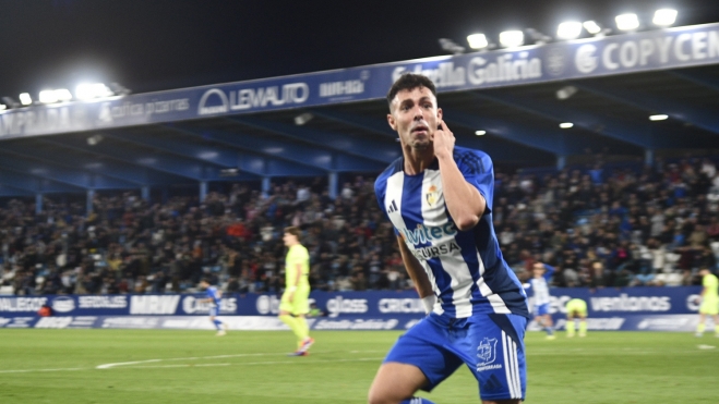 Goool de la Deportiva. Centro medido de Álvaro que remata Bustos en escorzo para empatar.