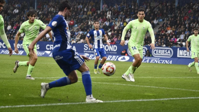¡Lo sigue intentando la Deportiva! Cortés conduce hasta la frontal del área y suelta un latigazo que detiene Astralaga.