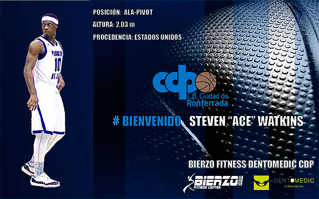 El Bierzo Fitness Dentomedic Ciudad de Ponferrada (CdP) ha fichado al ala-pívot estadounidense Steven Watkins, más conocido como Ace. Procedente de la Universidad Virgin Island, Watkins mide 2,03 metros y pesa 102 kilogramos. Nacido en Chicago, destaca por anotar desde fuera, ser muy intenso y dinámico y tener buena capacidad reboteadora, así como por su experiencia en ligas de fuera de Estados Unidos.