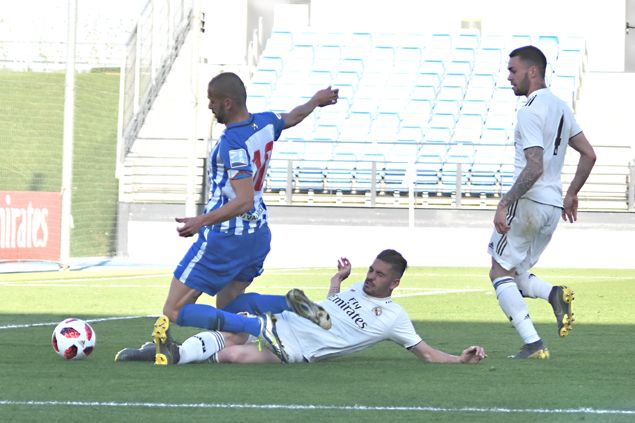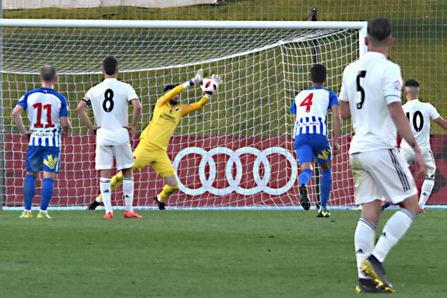 Una de las situaciones de mayor peligro del filial merengue la firmó De Frutos con un remate de cabeza después de un centro de Dani Fernández. El propio 7 blanco asistió poco después a Dani Gómez, que desaprovechó una clara opción debido a la intervención de Manu García. El propio arquero visitante pudo cometer un más que posible penalti sobre Alberto, cuyo remate se fue lamiendo el palo.