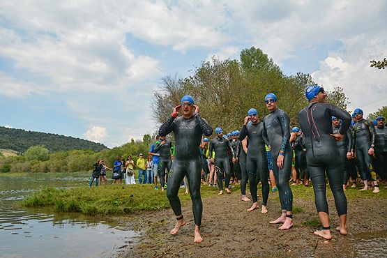Los participantes recorrieron 1.800 metros a nado en el Lago de Carucedo, 60 km en bici por el entorno de Las Médulas y 15 km de carrera con meta en Villafranca.