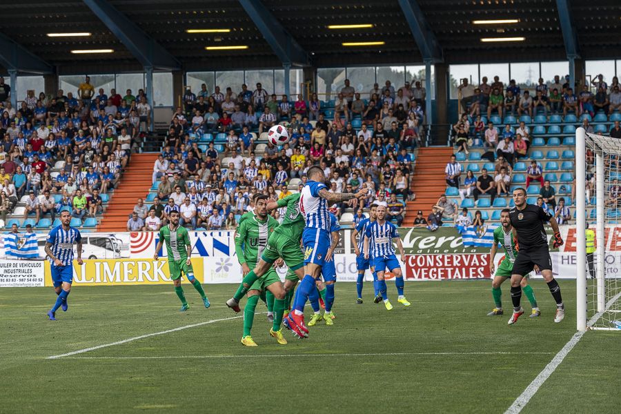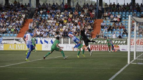 De hecho, la primera acción de peligro, para la escuadra local, la protagonizó Isi, que superó a varios adversarios y soltó un latigazo que se fuera cerca de la cepa del poste. A continuación, un centro de Ríos Reina estuvo a punto de sorprender a Ramón. Fueron los dos avisos de la Deportiva, pues en la siguiente que tuvo, en un córner, puso el 1-0. Como en la ida, a balón parado se adelantó el equipo blanquiazul, esta vez con un saque de Ríos Reina al primer palo que peinó Isi y sorprendió a Ramón.