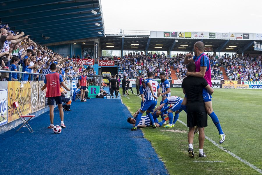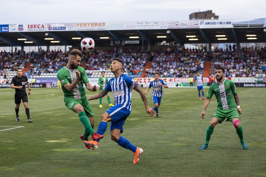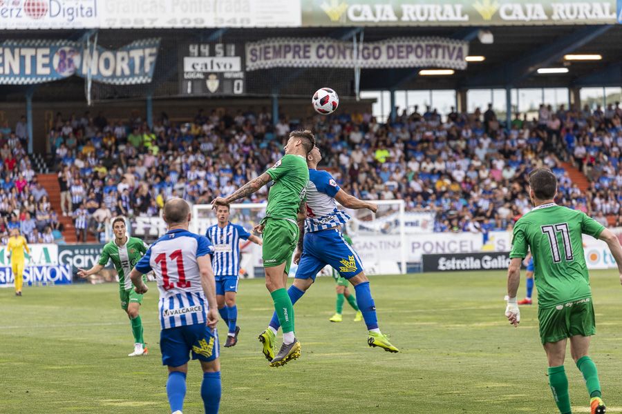 Nada podía fallar viendo El Toralín convertido en el estadio de las grandes ocasiones, una fiesta. Se respiraban aires de remontada y la Deportiva Ponferradina, que había caído por 2-1 en Cornellà, no falló a la cita, se unió a la verbena y consiguió dar la vuelta a la eliminatoria al vencer por 2-0 al cuadro barcelonés, un resultado que, aunque corto a tenor de los méritos realizados, le permite acceder a la segunda ronda del play-off y mantener vivo el sueño del ascenso a la Segunda División gracias a su efectividad a balón parado.