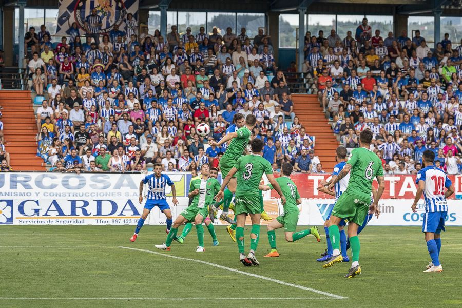Incidencias: Partido de vuelta de la primera eliminatoria del play-off de ascenso a la Segunda División, celebrado en el estadio Municipal El Toralín de Ponferrada (León). Se guardó un minuto de silencio por Pepe Cubelos.